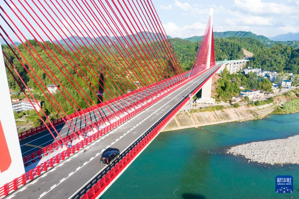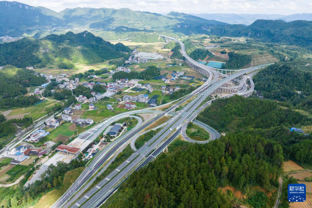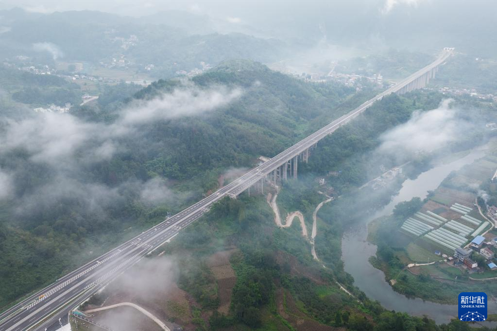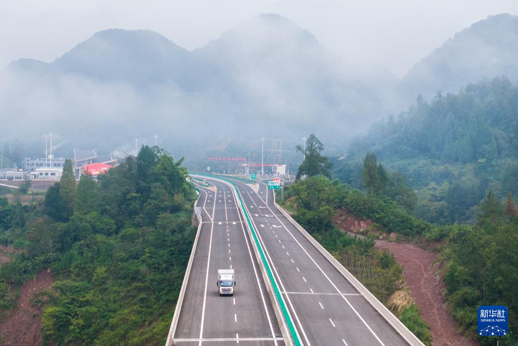 这是9月29日拍摄的穿山越岭的桑龙高速(无人机照片)。