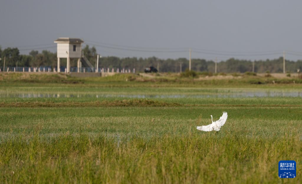这是9月20日在新疆巴音郭楞蒙古自治州尉犁县喀尔曲尕乡附近的塔里木河流域湿地拍摄的白鹭。