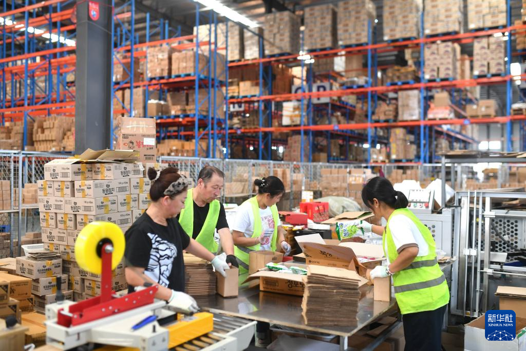 10月1日,工人在河北省遵化市苏家洼镇一家食品加工企业包装车间工作。