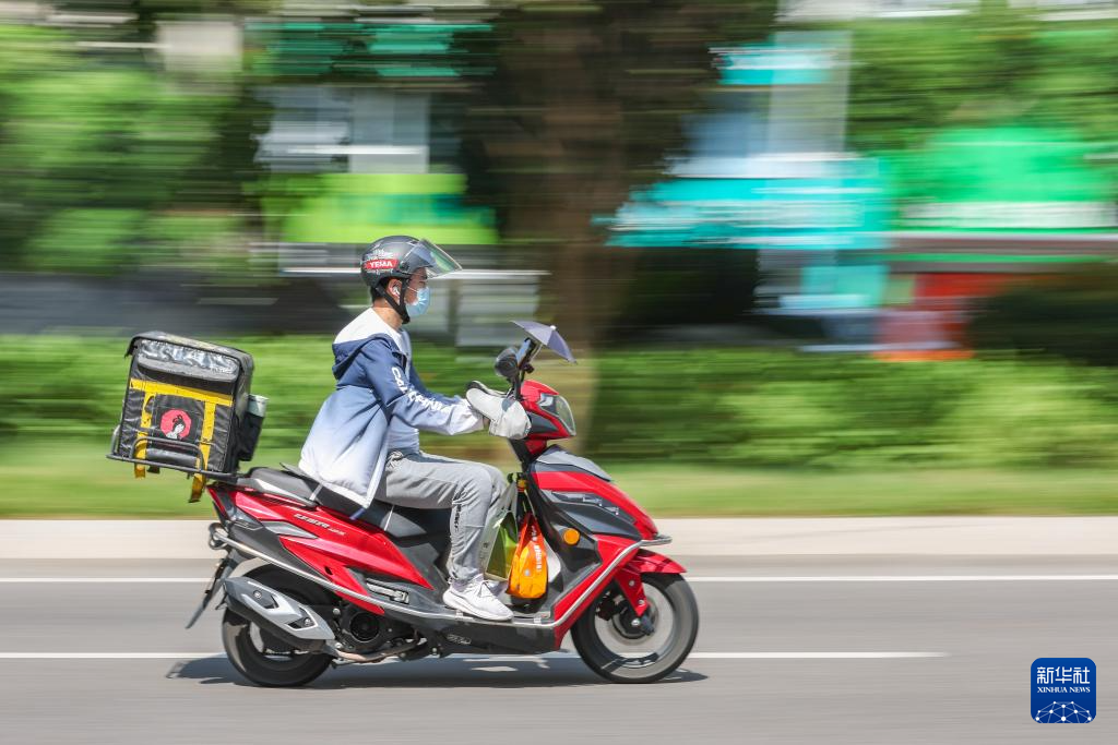 10月1日,在重庆市渝北区,一名外卖小哥在辛勤工作。