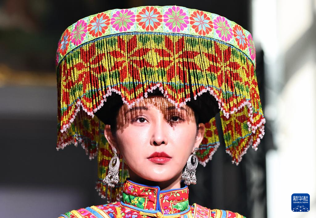 10月1日,在法国巴黎中国文化中心举行的第三届中法时装周上,模特在“非遗四川·百城百艺”盐边·傈僳族服饰时尚秀上展示服装。