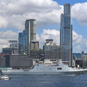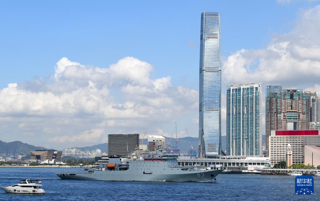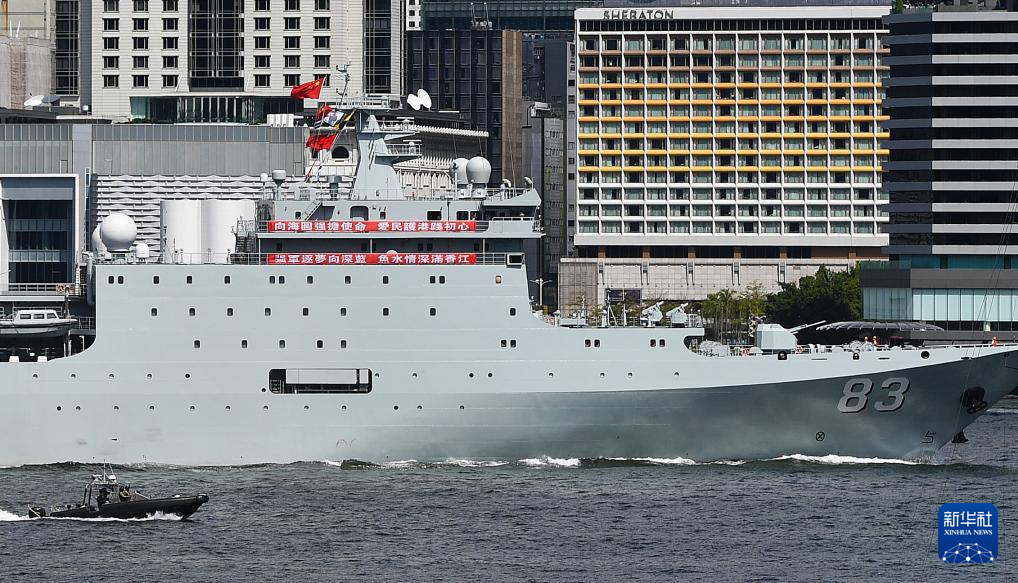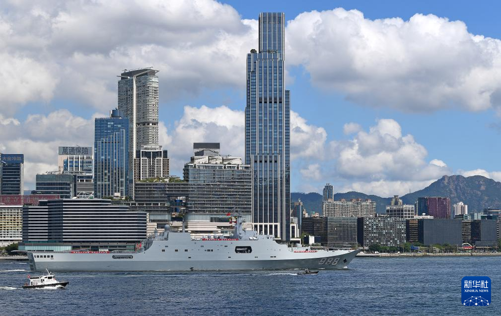 10月3日,中国海军沂蒙山舰从香港维多利亚港驶过。