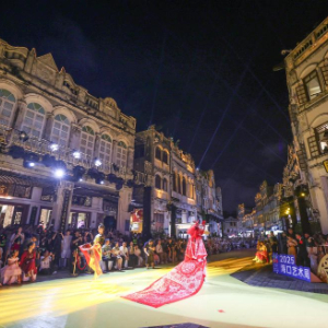 10月7日晚,作为2025海口艺术周系列活动之一,锦色·2025非遗潮秀在海口骑楼老街启幕。活动以“非遗再创”为核心,将剪纸艺术元素融入时装走秀。