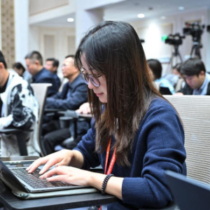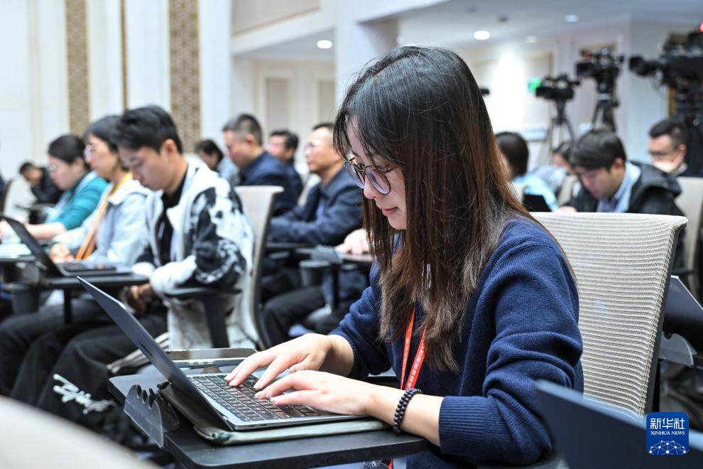 10月11日,国务院新闻办公室在北京举行“高质量完成‘十四五’规划”系列主题新闻发布会,住房城乡建设部部长倪虹、住房城乡建设部副部长董建国、住房城乡建设部副部长秦海翔、住房城乡建设部副部长李晓龙介绍“十四五”时期住房城乡建设高质量发展成就,并答记者问。这是记者在现场工作。