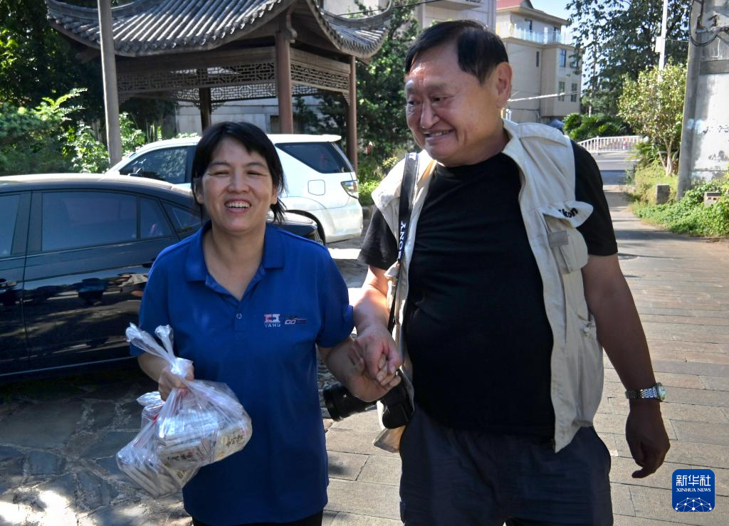 10月11日,李晓果(右)来到浙江金华看望自己当年采访拍摄过的、被张洪斌夫妇抚养长大的张菊菊。