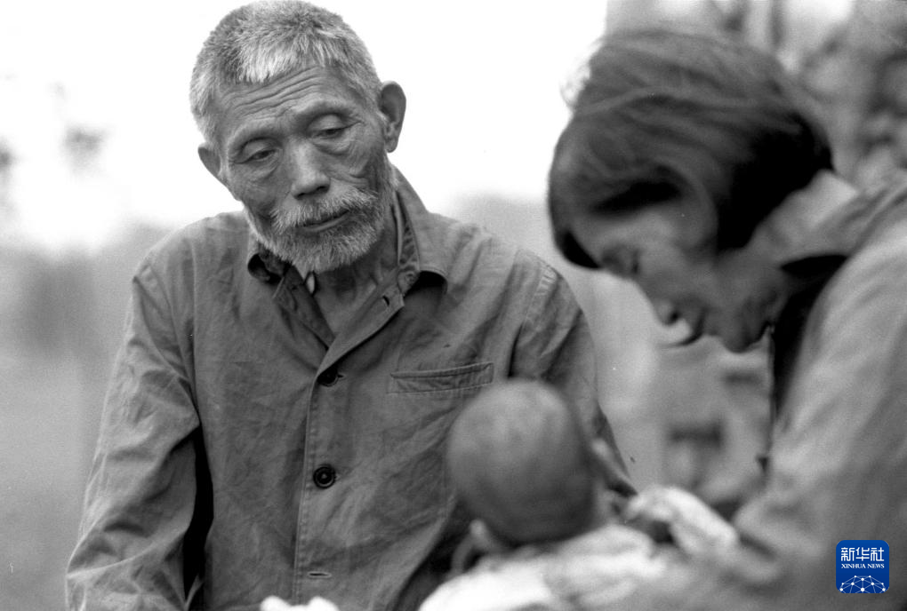 张洪斌(左)和楼小英在照顾收养的孩子(1988年9月摄)。