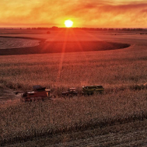 10月16日,在北大荒集团黑龙江八五六农场有限公司第四管理区,种植户在抢收玉米(无人机照片)。