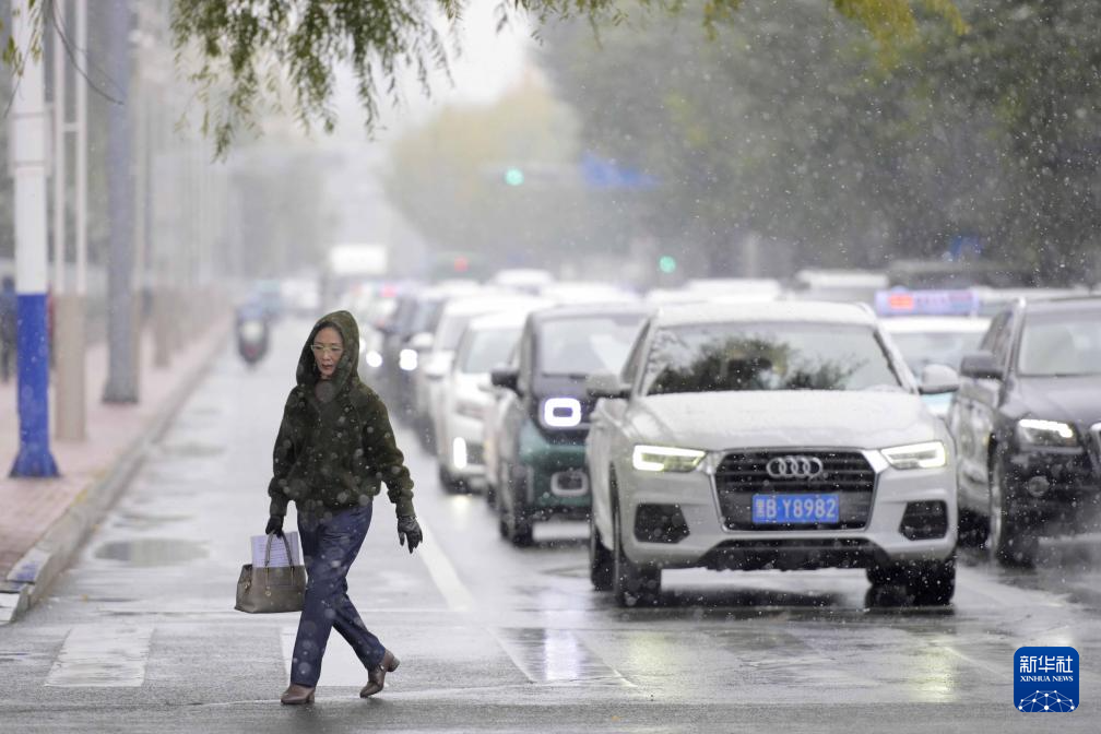10月17日,在齐齐哈尔市,市民在雪中出行。