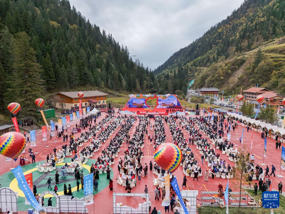 这是10月18日在四川省阿坝州黑水县卡龙镇才盖村拍摄的开幕活动现场(无人机照片)。