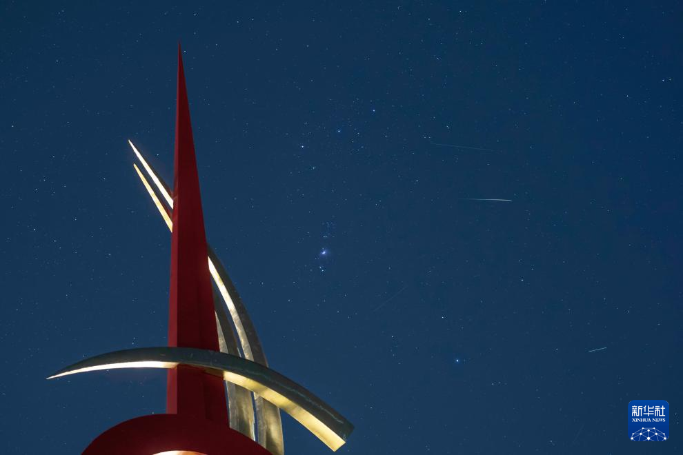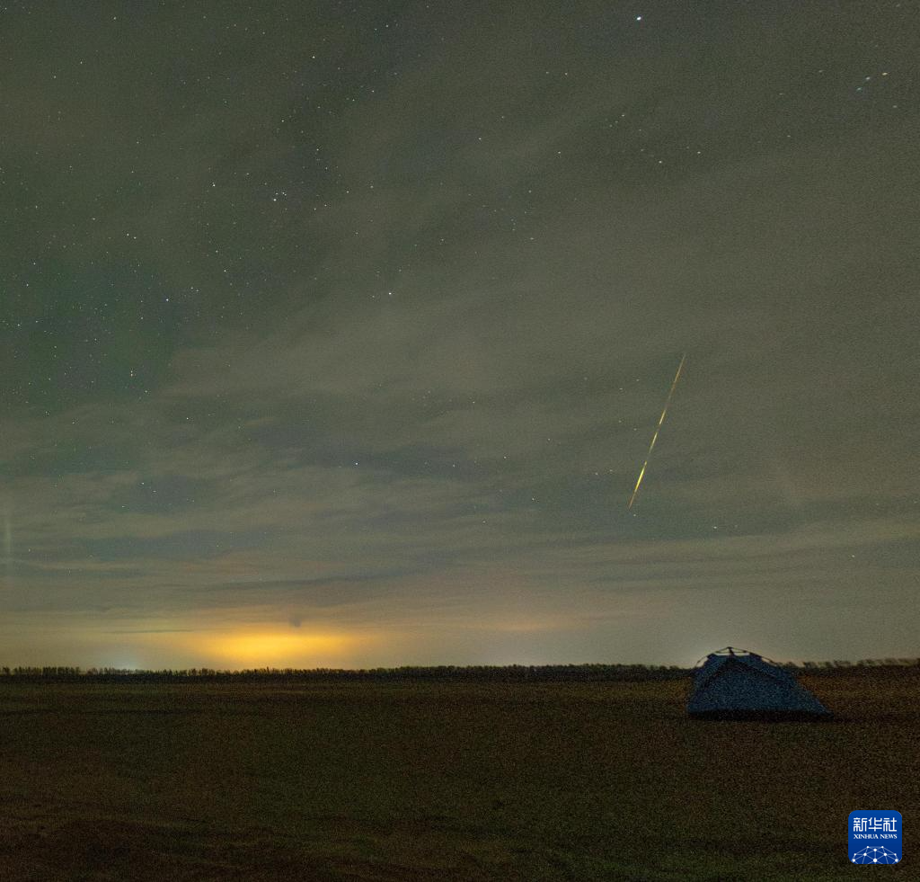 10月21日在黑龙江省齐齐哈尔市拍摄的猎户座流星雨。