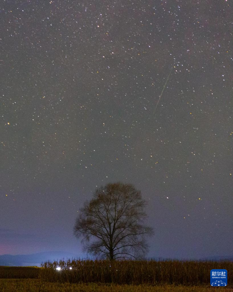 10月22日凌晨在黑龙江省汤原县拍摄的猎户座流星雨。