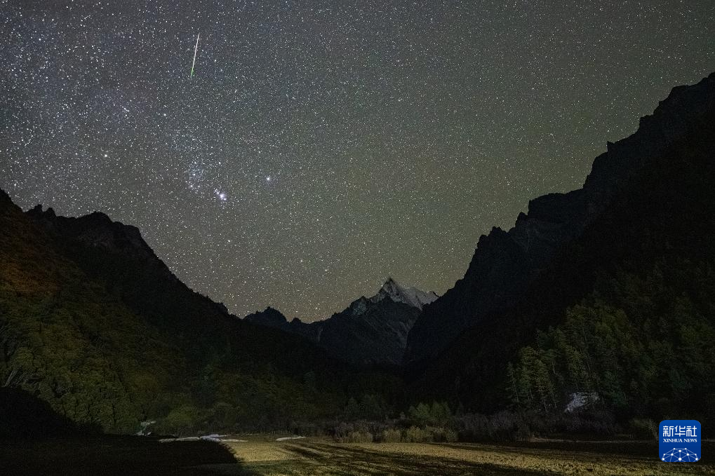 10月22日凌晨在四川省甘孜藏族自治州稻城亚丁景区拍摄的猎户座流星雨。