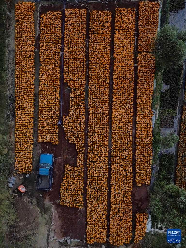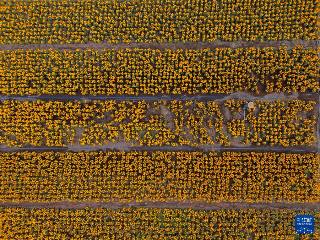 10月21日在墨西哥首都墨西哥城拍摄的万寿菊花田(无人机照片)。