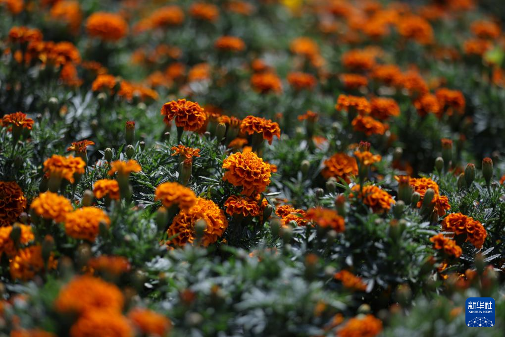 10月21日在墨西哥首都墨西哥城拍摄的万寿菊花田。