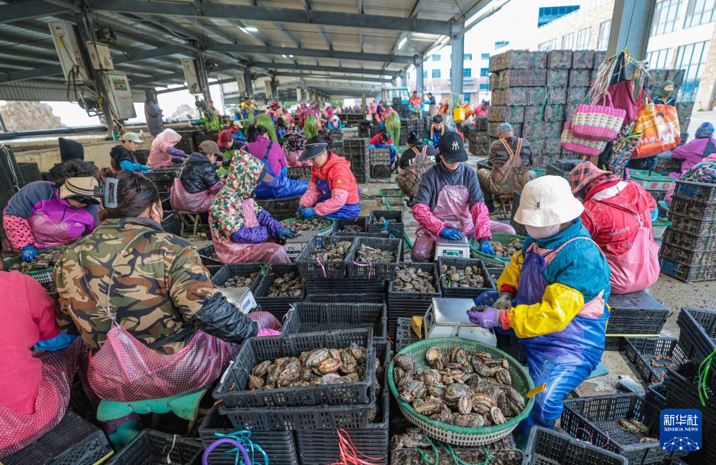眼下正值山东省荣成市鲍鱼收获季,养殖户忙碌作业,收获鲍鱼。