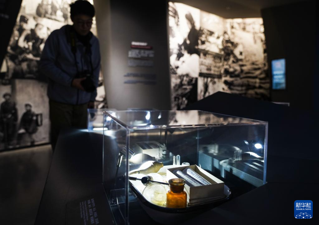 10月25日,参观者在中国红十字会救护总队贵阳图云关抗战纪念馆内观看展品。