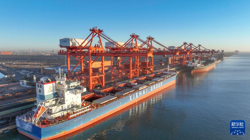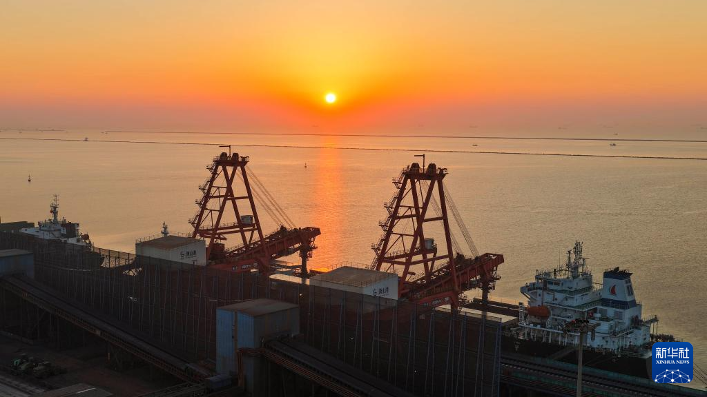 冬季即将来临,河北省唐山港京唐港区煤炭堆场、码头一片忙碌景象,工人们加紧进行电煤转运、装船等工作,全力保障电煤供应。