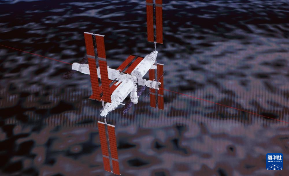 这是11月1日在北京航天飞行控制中心飞控大厅拍摄的交会对接模拟动画画面。