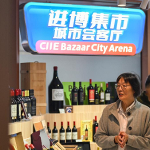第八届中国国际进口博览会将于11月5日拉开帷幕,位于上海市南京东路的“进博集市城市会客厅”汇聚多种进博会同款好物,吸引不少市民游客前来购买。