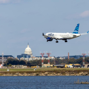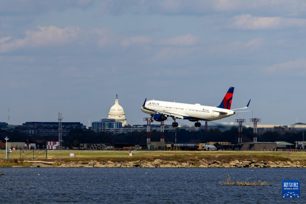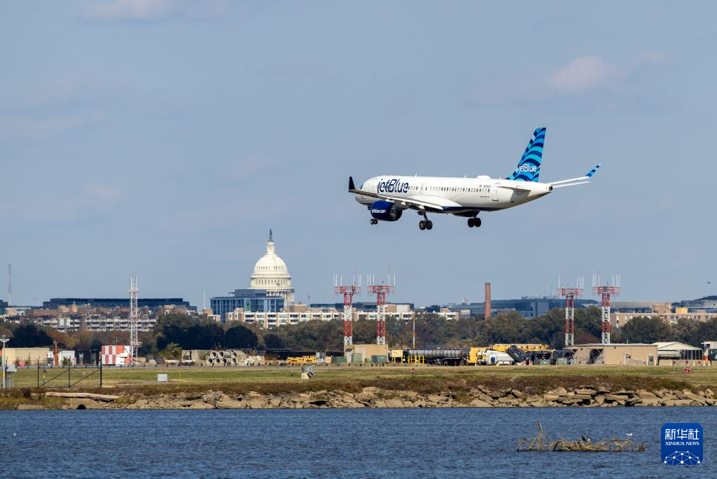 11月1日,一架飞机降落在美国弗吉尼亚州阿灵顿的里根国家机场。