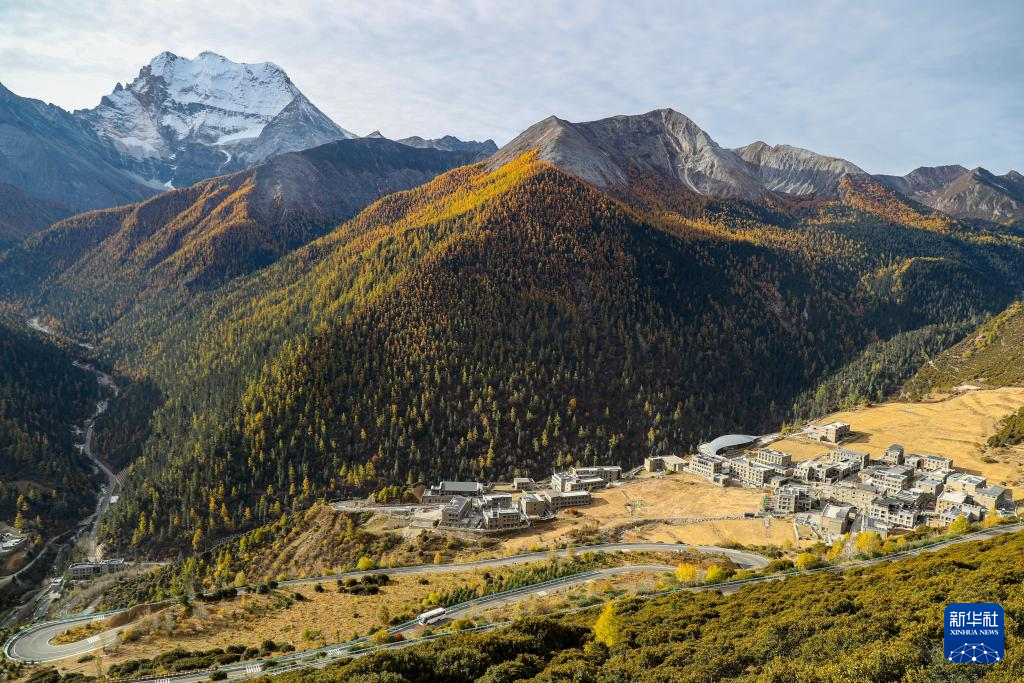 俯瞰雪山下的亚丁村(10月30日摄)。