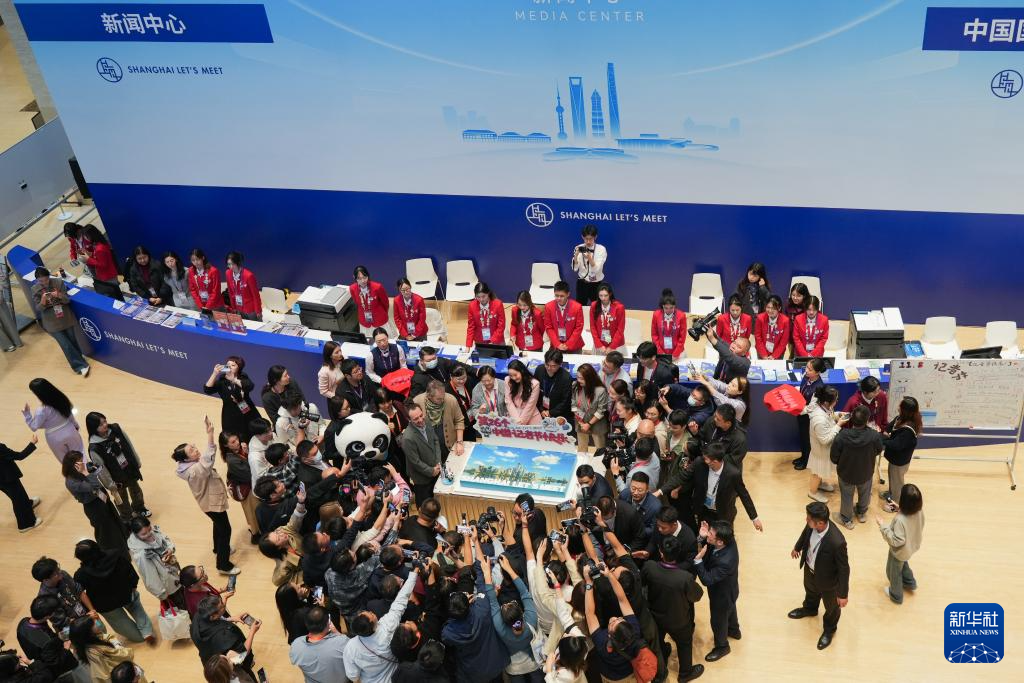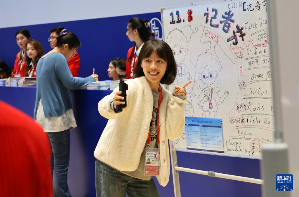 11月8日是第26个中国记者节。在第八届中国国际进口博览会现场,媒体记者在展区采访。多项活动同步在进博会新闻中心开展,为媒体记者庆祝属于他们的节日。