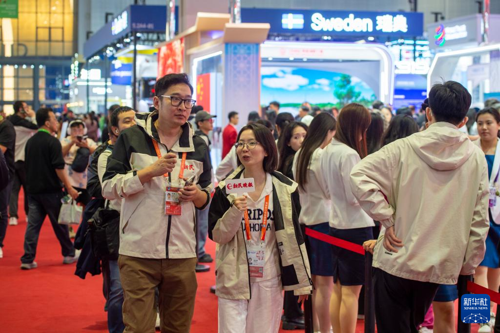 11月8日,媒体记者在国家展采访。