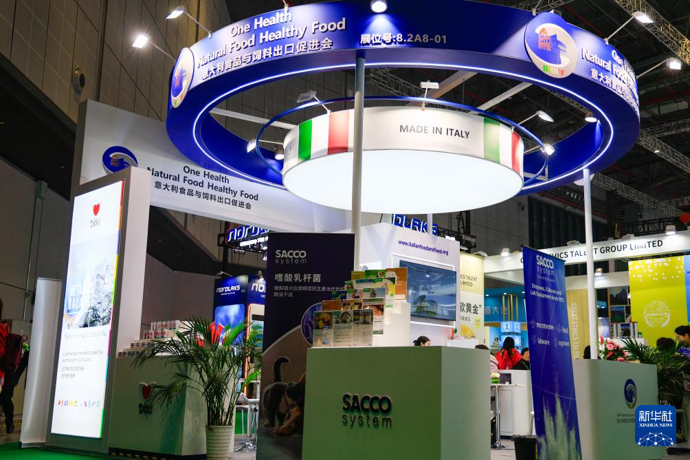 这是11月8日在第八届进博会农食产品展区拍摄的意大利食品与饲料出口促进会的展台。