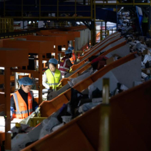 11月10日晚,在中国邮政集团有限公司黑龙江省哈尔滨邮区中心,工作人员在分拣快递。