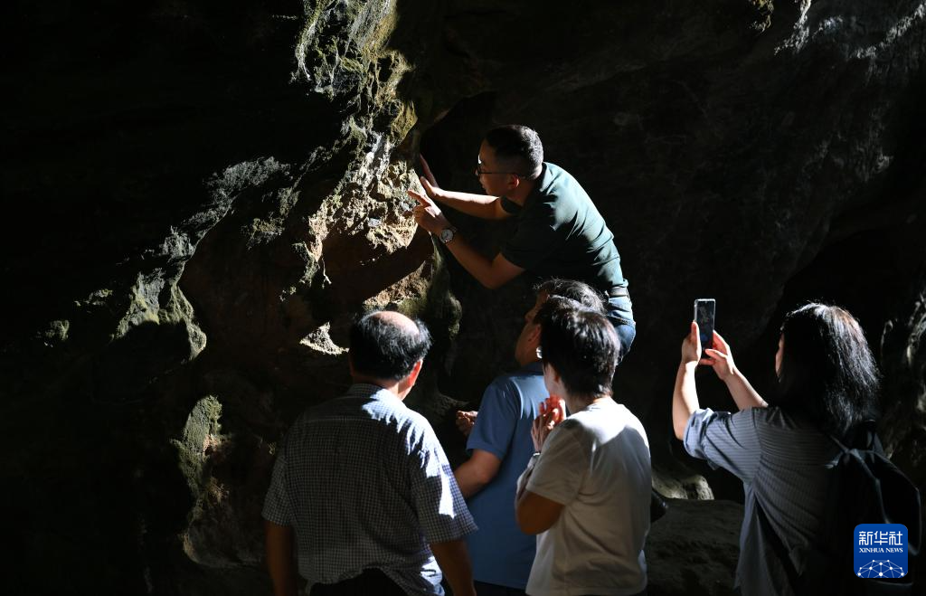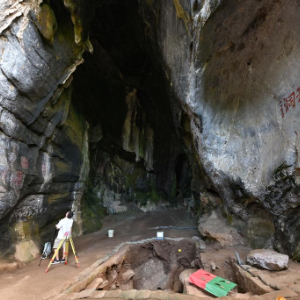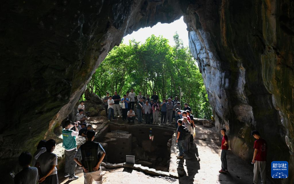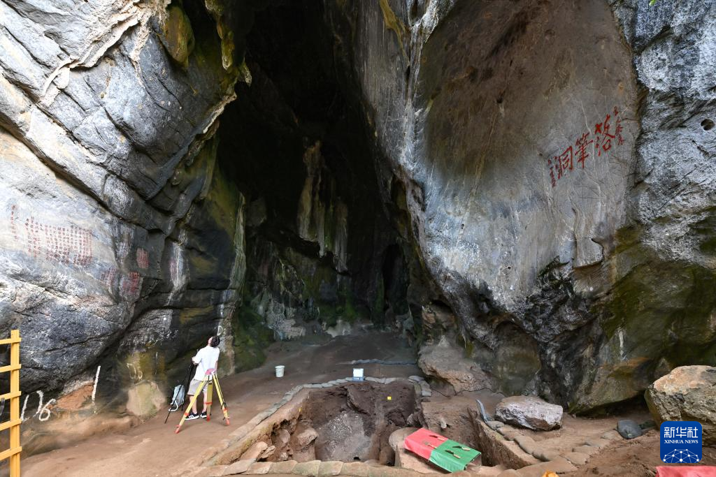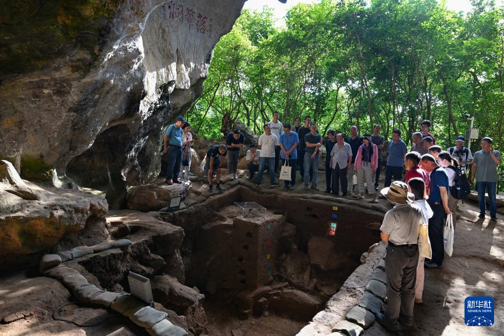 11月8日,考古专家在三亚落笔洞遗址观察发掘现场。