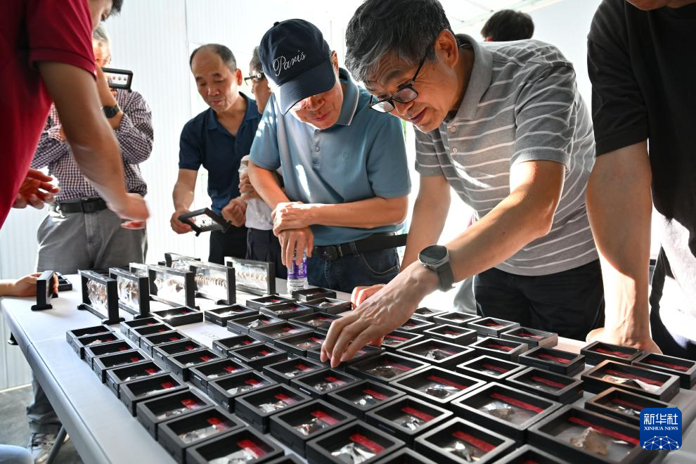11月8日,考古专家在三亚落笔洞遗址观察出土标本。