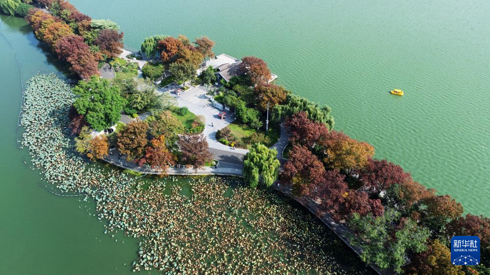 11月10日拍摄的南京玄武湖公园初冬景色(无人机照片)。