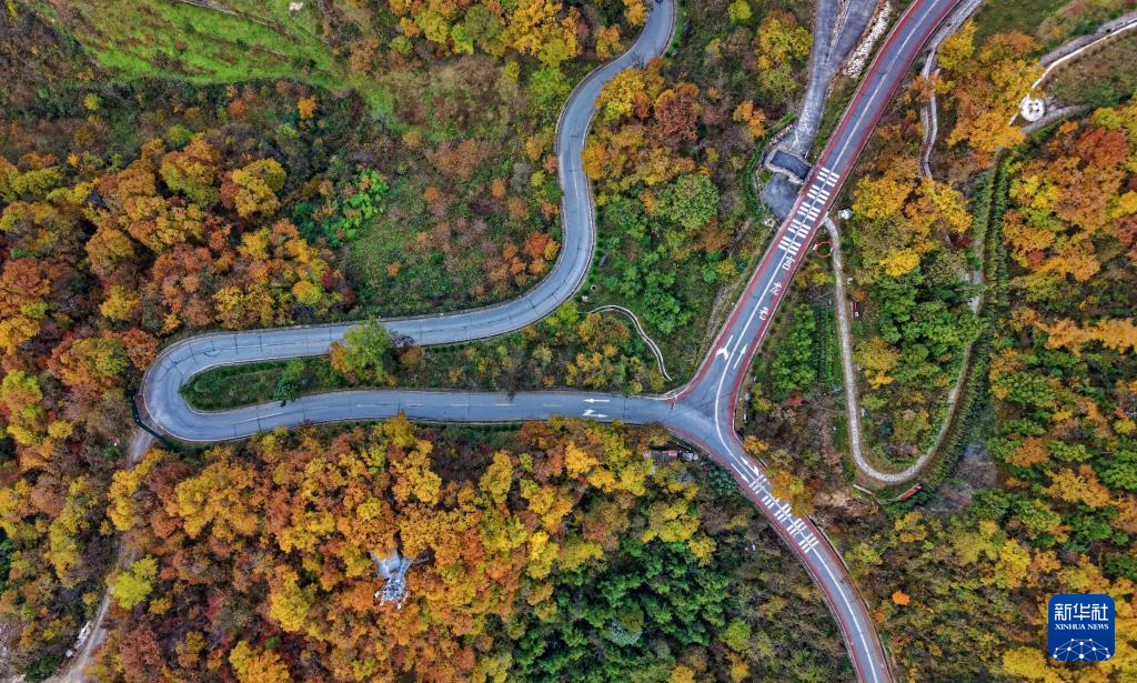 11月10日拍摄的湖北省襄阳市保康县马桥镇景色(无人机照片) 。