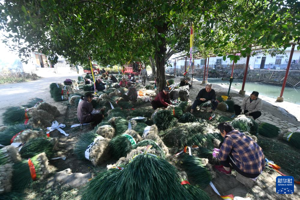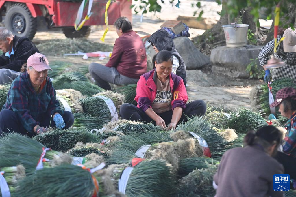柳州市柳江区三都镇觉山村村民们在挑选香葱(10月28日摄)。