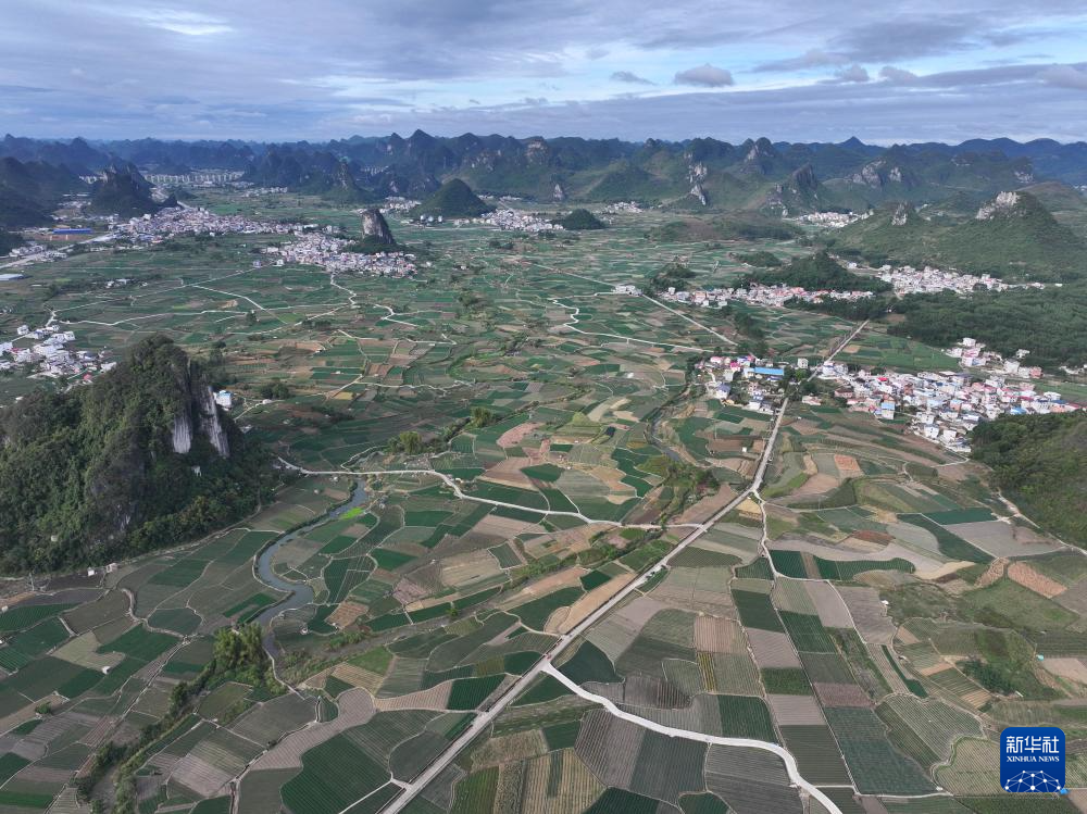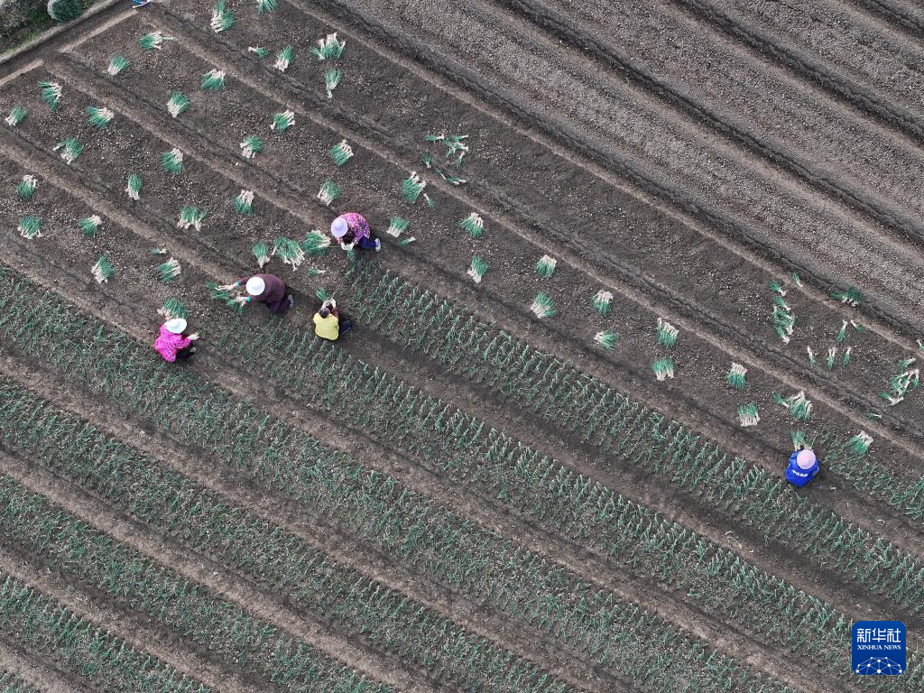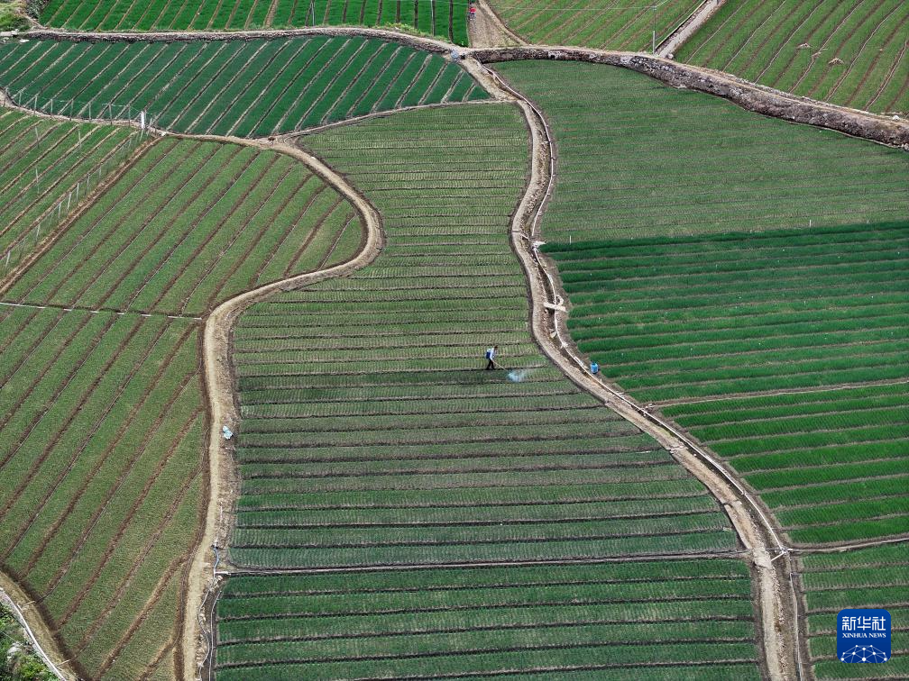 柳州市柳江区三都镇龙兴村村民在种植香葱(无人机照片,11月11日摄)。