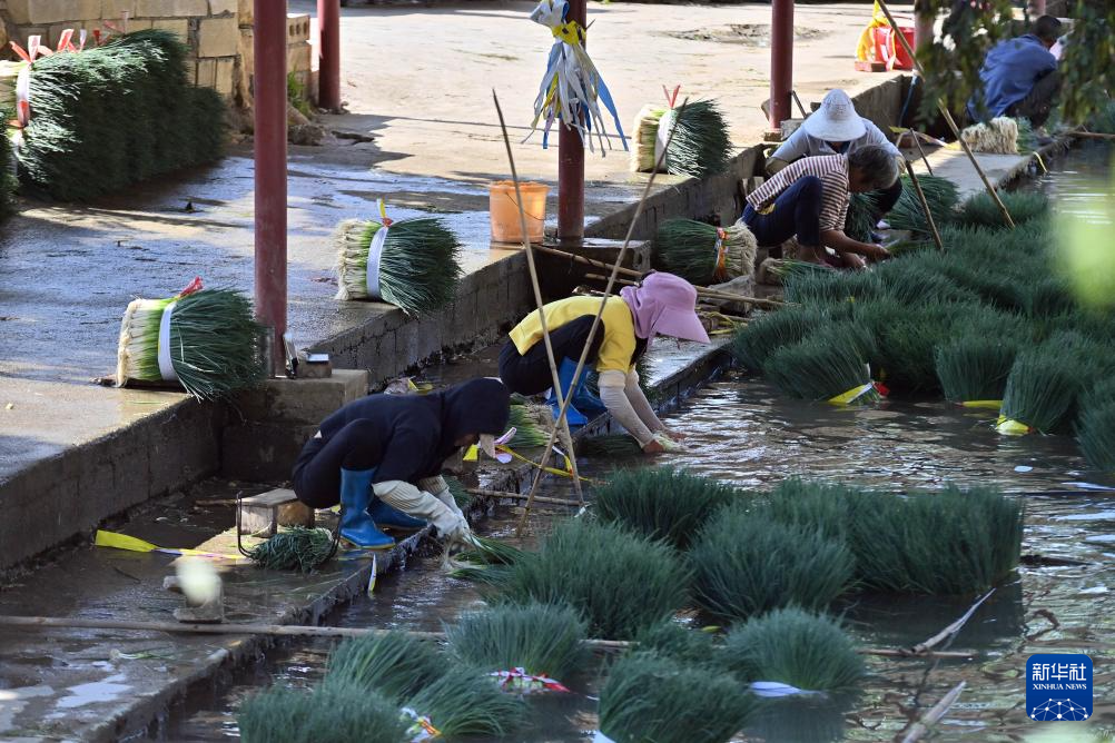 柳州市柳江区三都镇觉山村村民在洗香葱(10月28日摄)。