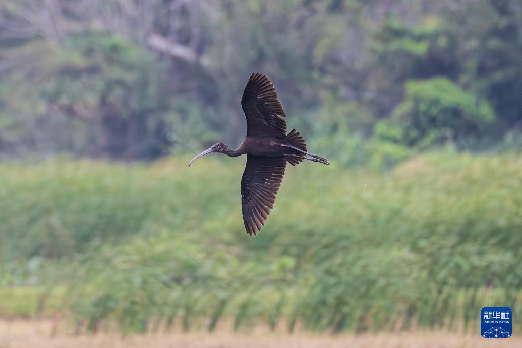近日,一只彩鹮现身海南昌江海尾国家湿地公园。这是自2024年以来,彩鹮连续第二年“打卡”此地。