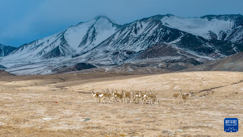 11月14日,国家二级保护野生动物藏原羚在甘肃省阿克塞县阿勒腾乡哈尔腾草原活动觅食。