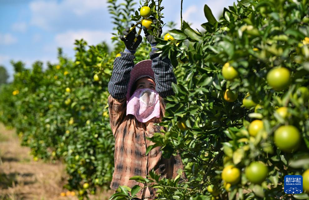 11月14日,农民在澄迈县福山镇永文村的福橙种植基地采摘福橙。