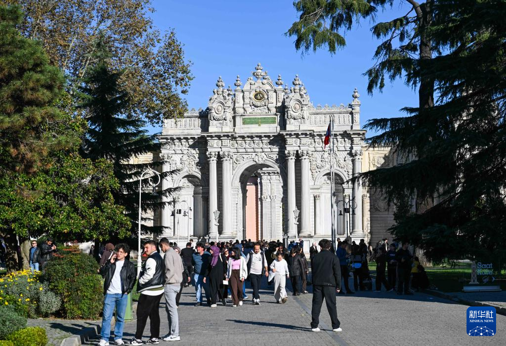 这是11月15日在土耳其伊斯坦布尔拍摄的多尔玛巴赫切宫大门。