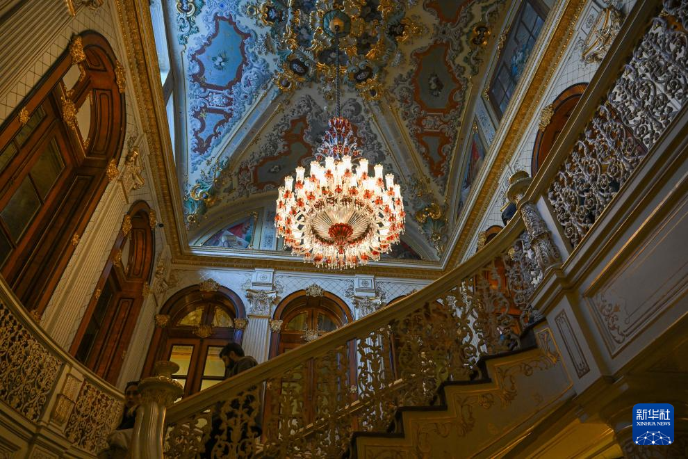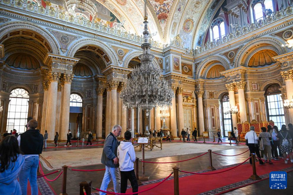 11月15日,游客在土耳其伊斯坦布尔欣赏多尔玛巴赫切宫中的展品。