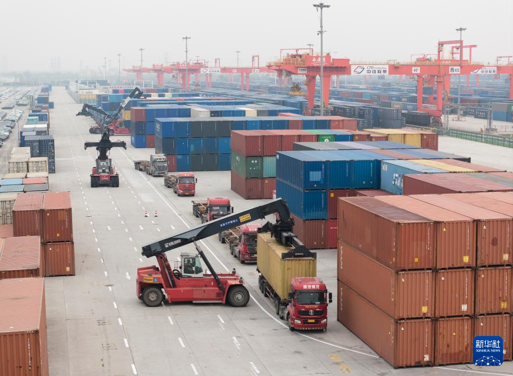 西安国际港站运行中的哈萨克斯坦西安码头(11月14日摄,无人机照片)。
