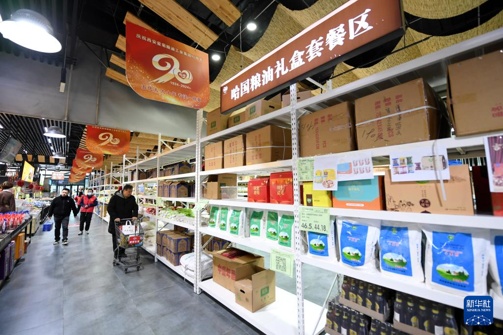 1月10日,在位于西安浐灞国际港的爱菊健康生活体验馆,消费者挑选哈萨克斯坦粮油产品。