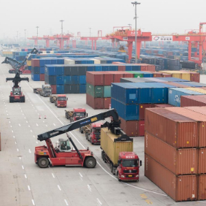 11月14日,在西安国际港站哈萨克斯坦西安码头,工人将新能源汽车驶入集装箱内。