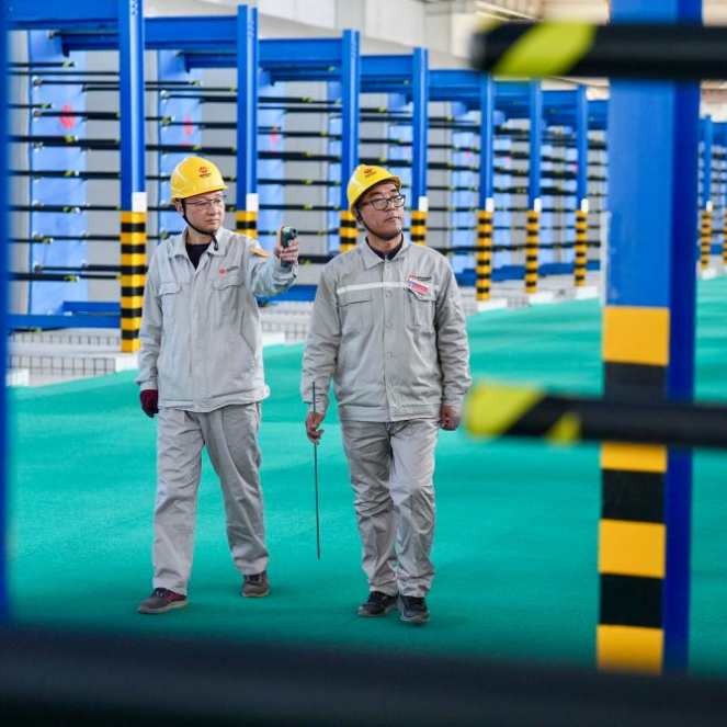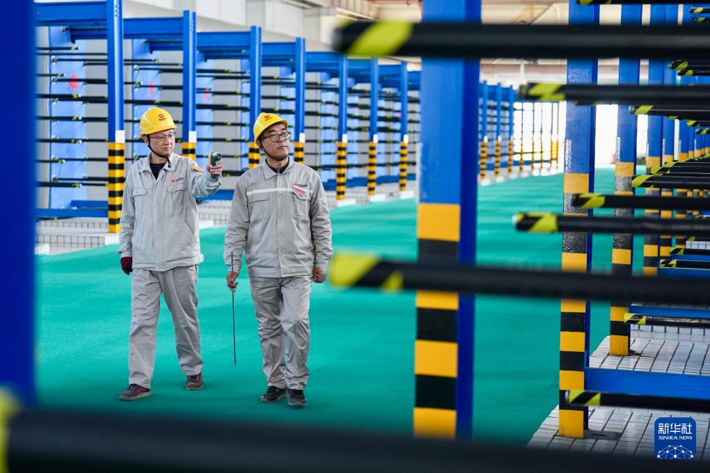 11月18日,在位于宁夏银川的国能宁夏供热有限公司中继泵站内,工作人员对供热管网进行巡检。