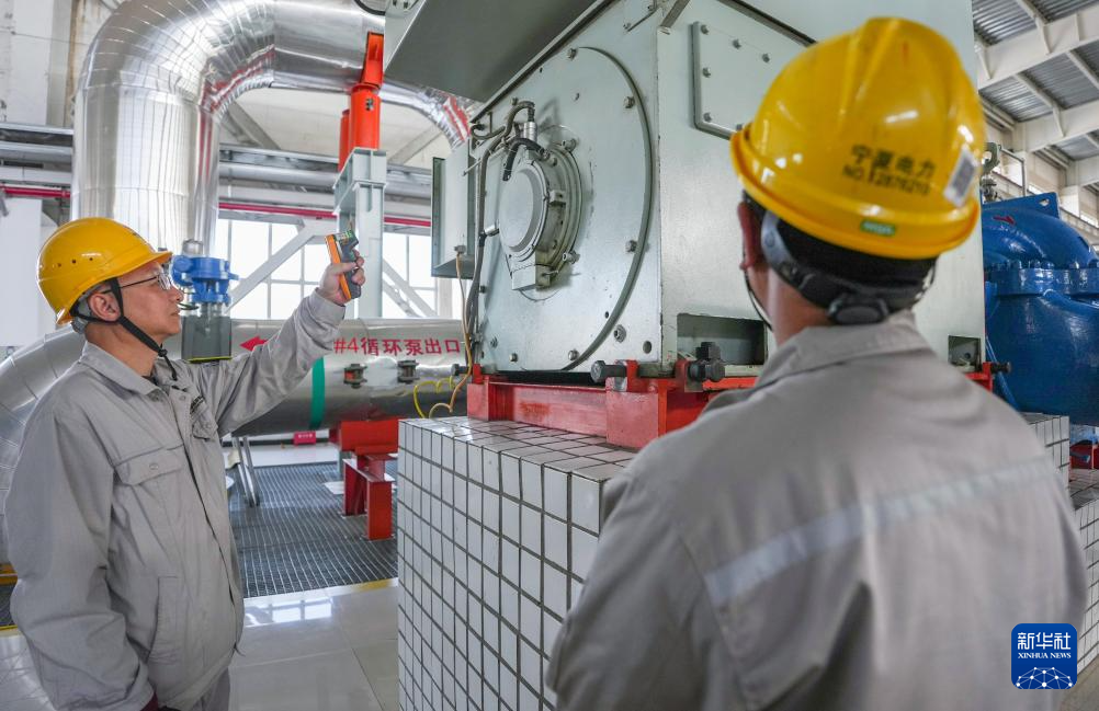 11月18日,在位于宁夏银川的国能宁夏供热有限公司中继泵站内,工作人员检测循环泵电机温度。