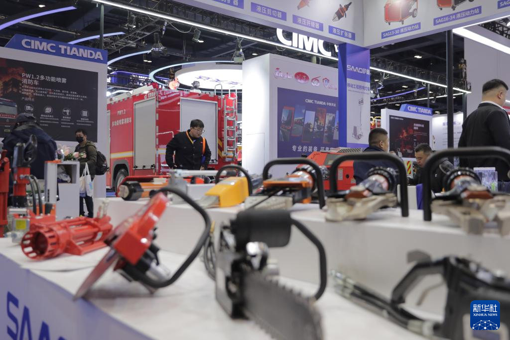 11月18日,观众在2025中国国际应急管理展览会惠达科技展位参观。