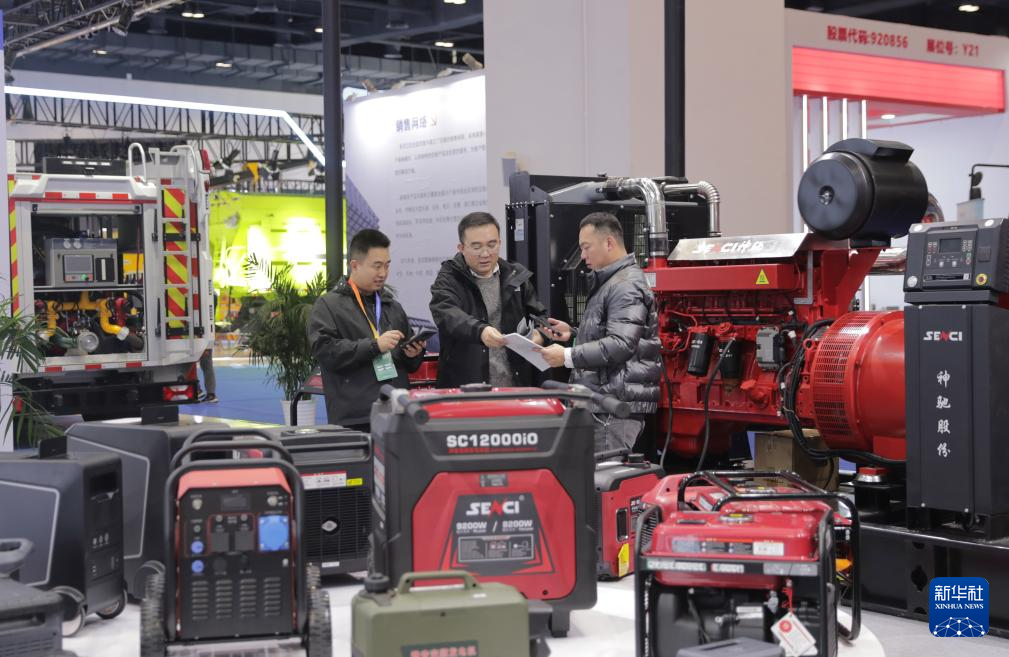 11月18日,观众在2025中国国际应急管理展览会泽川动力展位参观。
