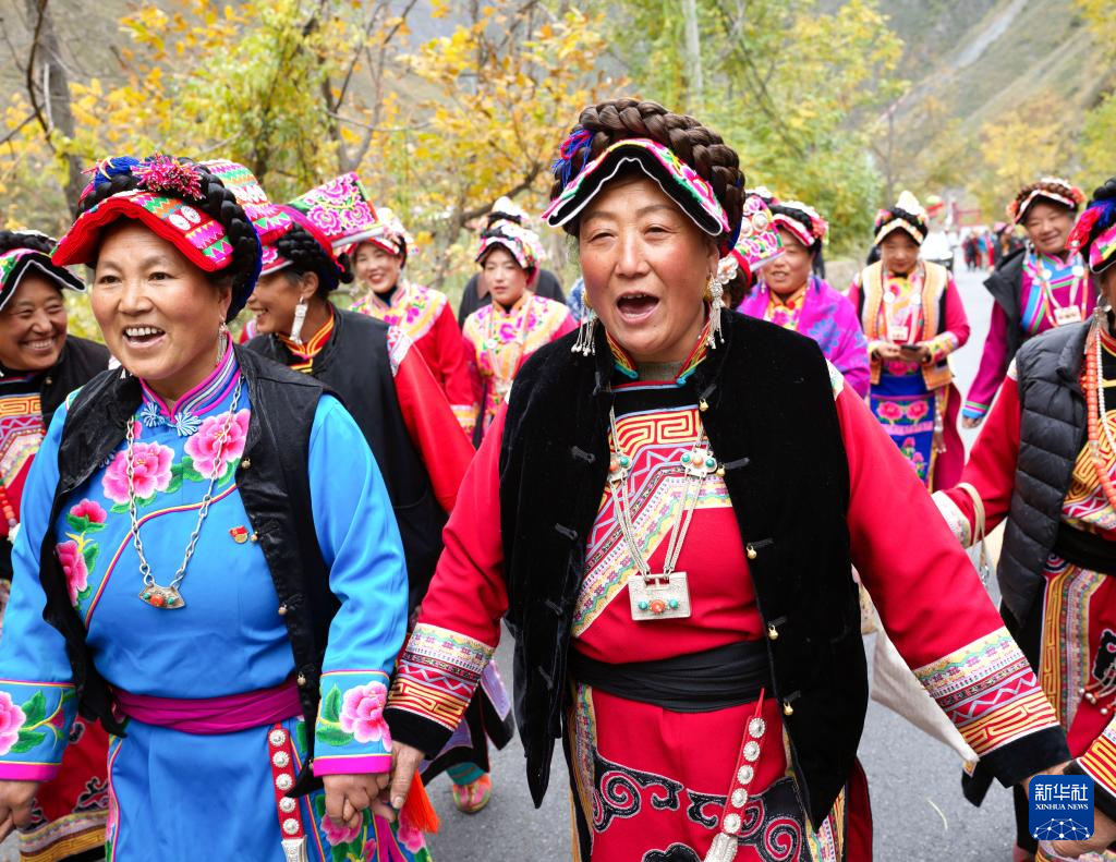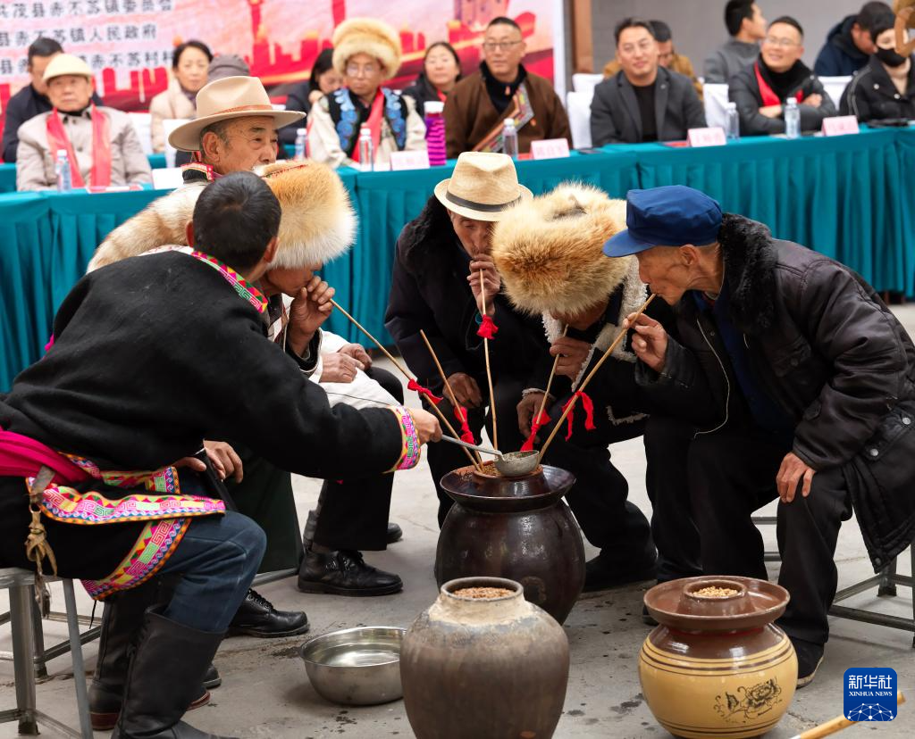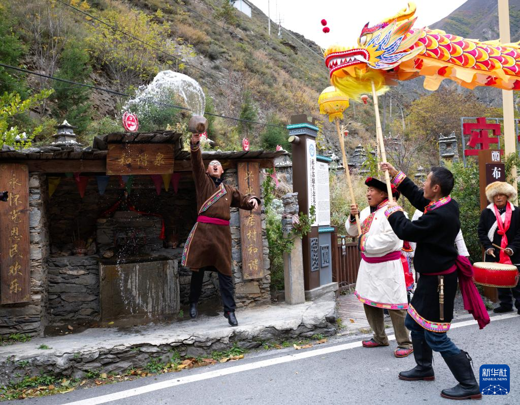11月18日,四川省阿坝藏族羌族自治州茂县赤不苏镇举行特色民俗文化活动,当地群众身着传统民族服饰,与游客一起载歌载舞、品尝咂酒、共话丰收,喜迎一年一度的羌历新年。