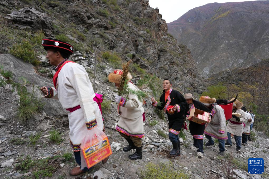 11月18日,茂县赤不苏镇群众在参加祈福仪式的路上。